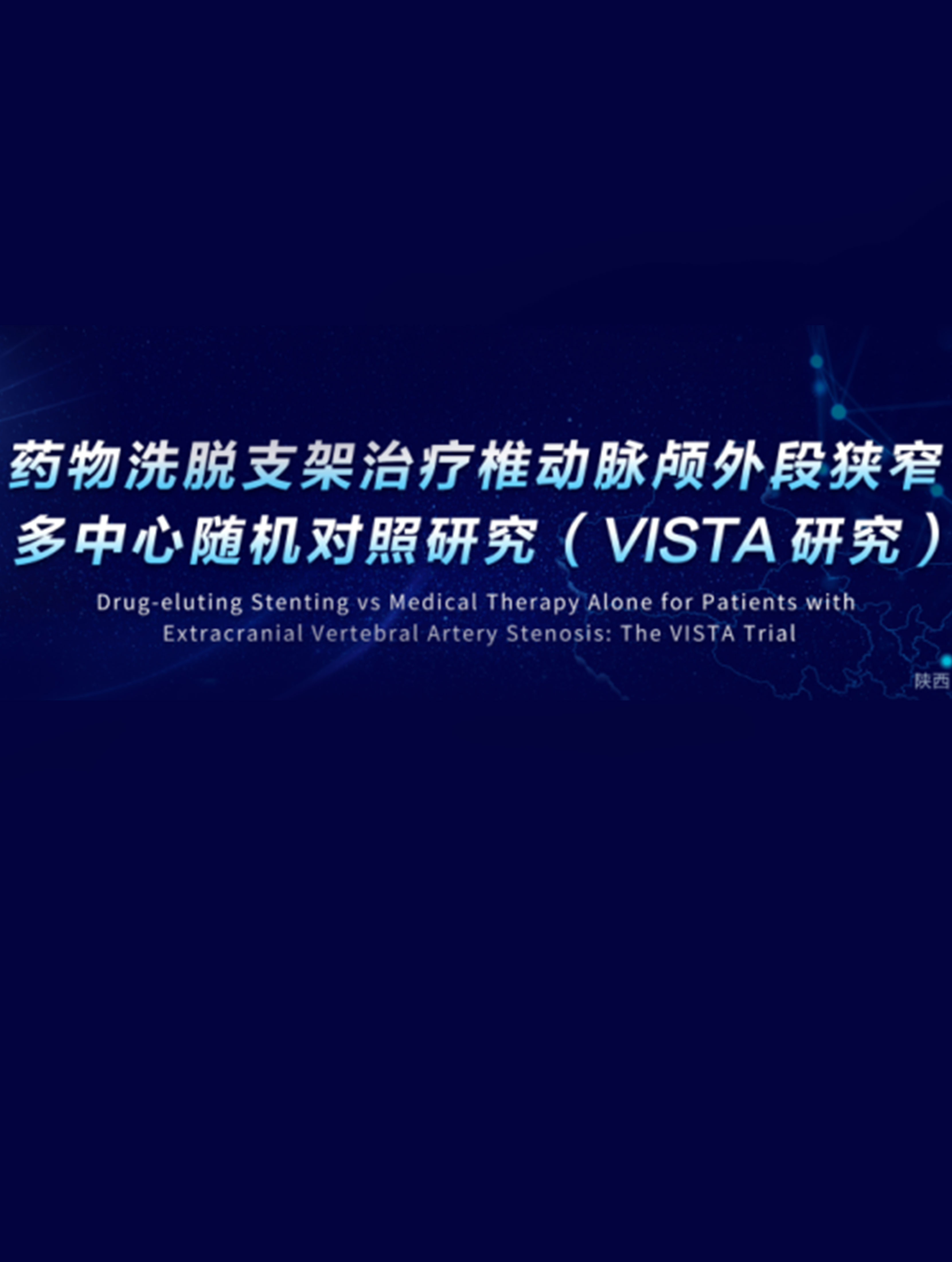 对比雷帕霉素药物洗脱支架联合药物治疗和单纯药物治疗用于症状性颅外动脉粥样硬化性狭窄的有效性和安全性的多中心随机对照试验。共由31家中国三甲医院参与,预计将纳入472例经全脑血管造影确诊为症状性椎动脉颅外段(V1-2)重度狭窄患者。随机按1:1被分为试验组(药物洗脱支架联合最佳药物治疗)和对照组(最佳药物治疗)。所有患者需在基线、入组后第3天、30天、6个月、12 个月、24 个月和 36 个月行脑血管造影、脑组织灌注、脑组织和脑血管检查。本研究预计采集相关影像数据千余例,数十万帧影像资料,分别进行归类整理,存储和判读。